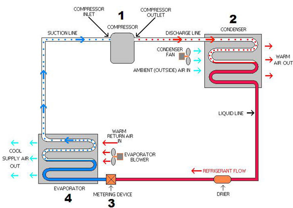 In the following diagram, you can find some major components that concern pretty much all HVAC systems. There are, of course, differences between different HVAC system configurations, but the core concept and HVAC components are basically common among all of them. The following diagram shows a working cycle in an HVAC system, that could be intended for both heating and cooling applications by changing where the heat is absorbed from and where it is rejected to.